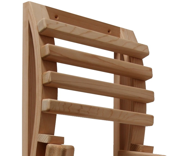 Oparcie z drewna cedrowego zostało zaprojektowane specjalnie z myślą o maksymalnym komforcie w saunie na podczerwień. Oparcie to pojedynczy element, który otacza promiennik podczerwieni ze wszystkich stron, umożliwiając wygodne odchylenie się do tyłu bez bezpośredniego kontaktu z nim. Nie nadaje się do pieców węglowych! Nie jest kompatybilne z serią Vista!