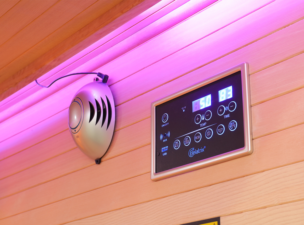 Dla większego komfortu podczas korzystania z sauny, sauny na podczerwień Belatrix wyposażone są w możliwość regulacji intensywności poszczególnych promienników.