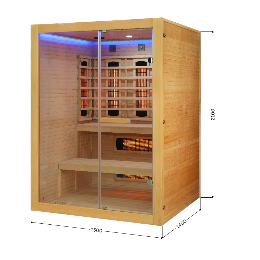 Dzięki kompaktowym wymiarom sauna na podczerwień nadaje się również do mniejszych mieszkań, domów lub ośrodków wellness.