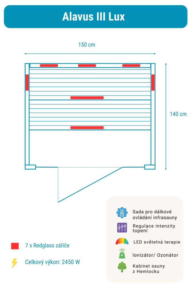 Sauna na podczerwień Alavus 3 Lux zawiera:
