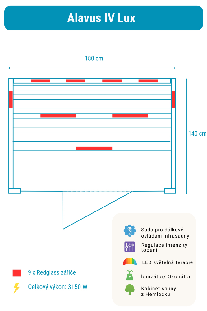 Sauna na podczerwień Alavus 4 Lux zawiera: