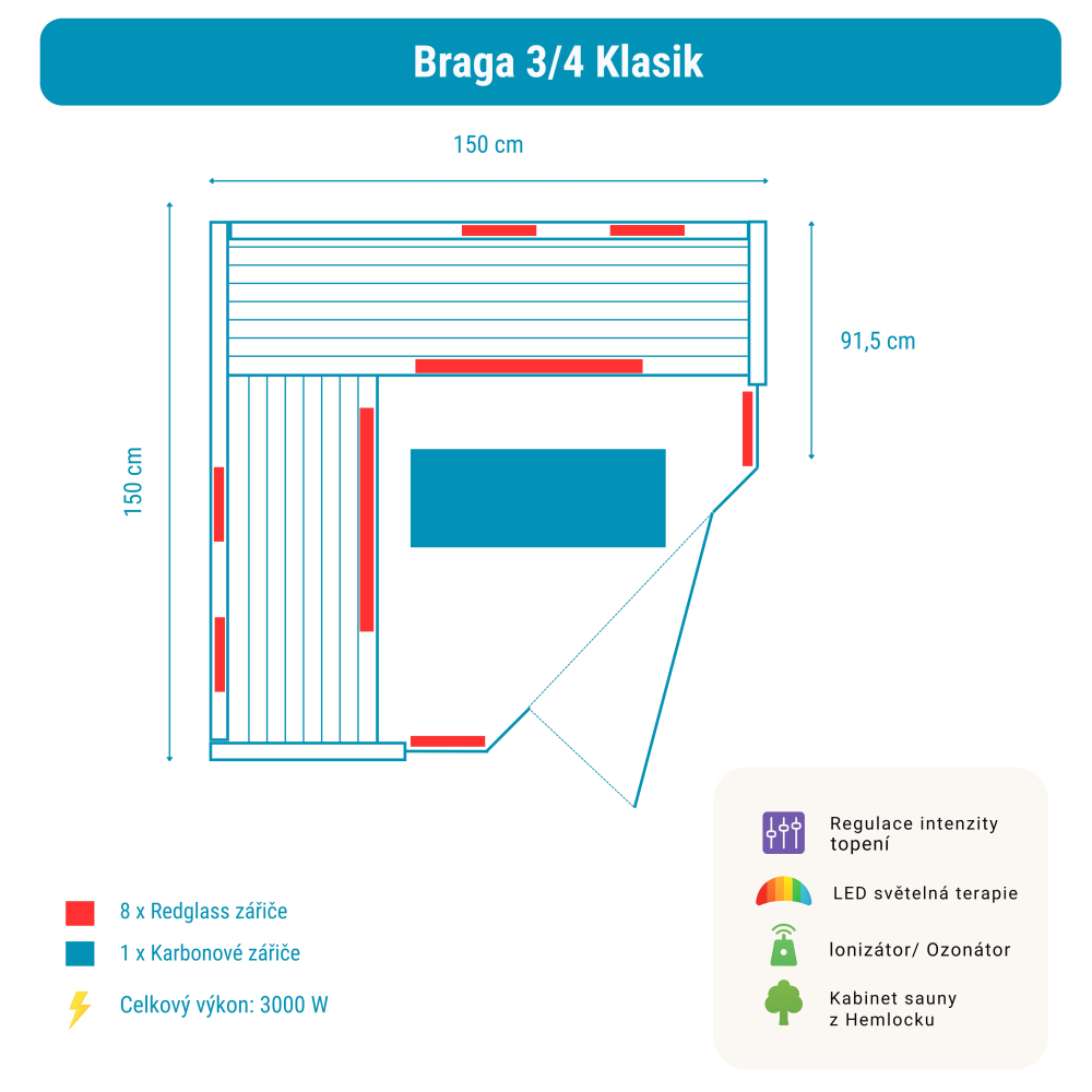 Sauna na podczerwień Braga 3/4 Classic zawiera: