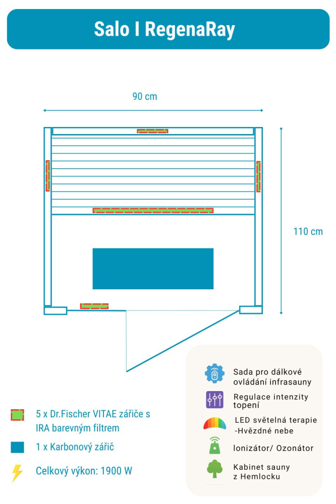 Sauna na podczerwień Salo 1 RegenaRay obejmuje:
