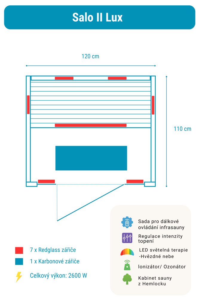 Sauna na podczerwień Salo 2 Lux zawiera: