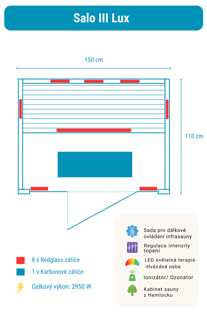 Sauna na podczerwień Salo 3 Lux zawiera:
