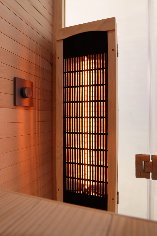 Standardowe grzejniki fabryczne: Sauna na podczerwień jest wyposażona w pełnospektralne grzejniki RedGlass Dark . W drugim kroku zamówienia istnieje możliwość wyboru grzejnika Philips Vitae w obniżonej cenie .