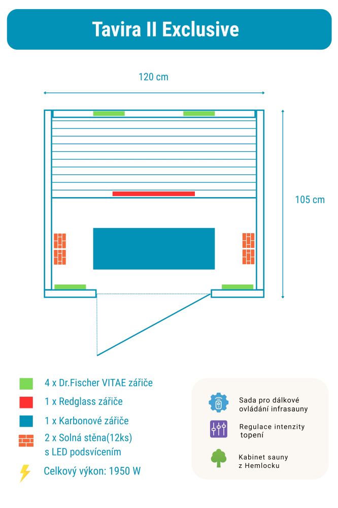 Sauna na podczerwień Tavira 2 Exclusive obejmuje: