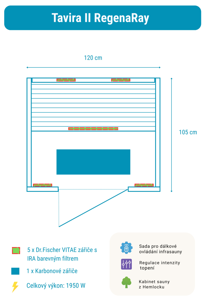 Sauna na podczerwień Tavira 2 RegenaRay obejmuje: