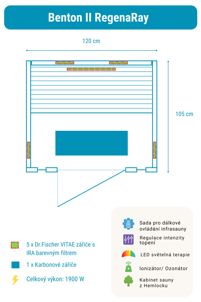 Sauna na podczerwień Benton 2 RegenaRay zawiera: