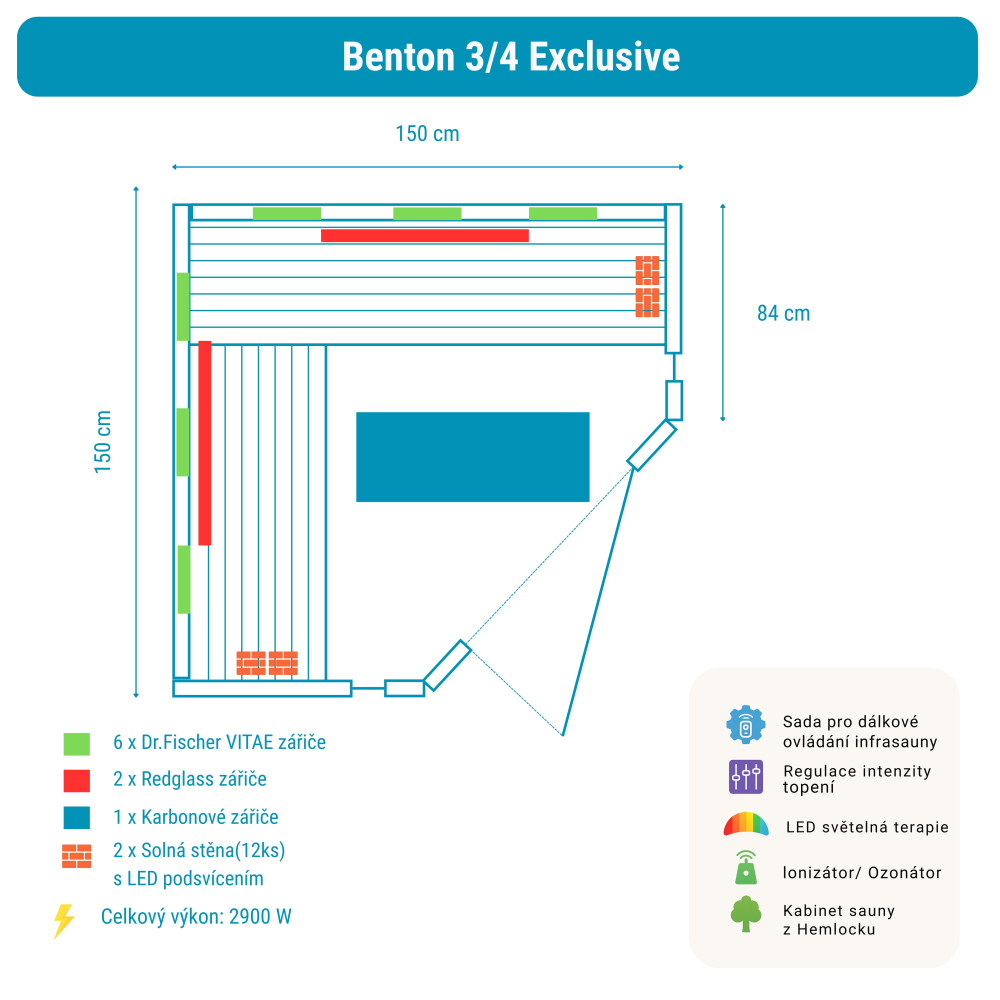 Sauna na podczerwień Benton 3/4 Exclusive zawiera: