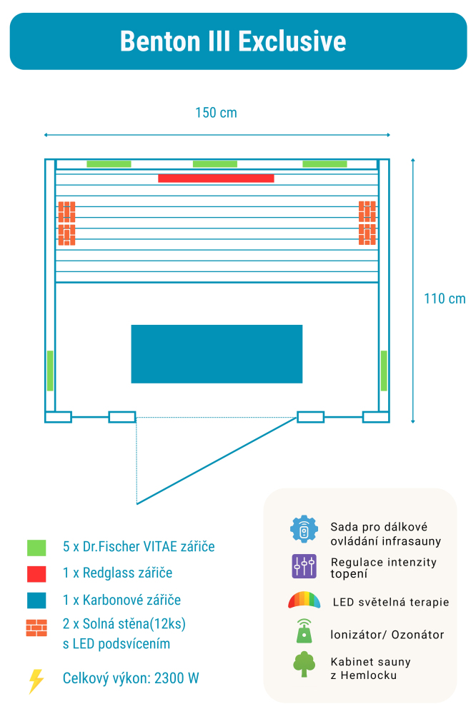 Sauna na podczerwień Benton 3 Exclusive zawiera: