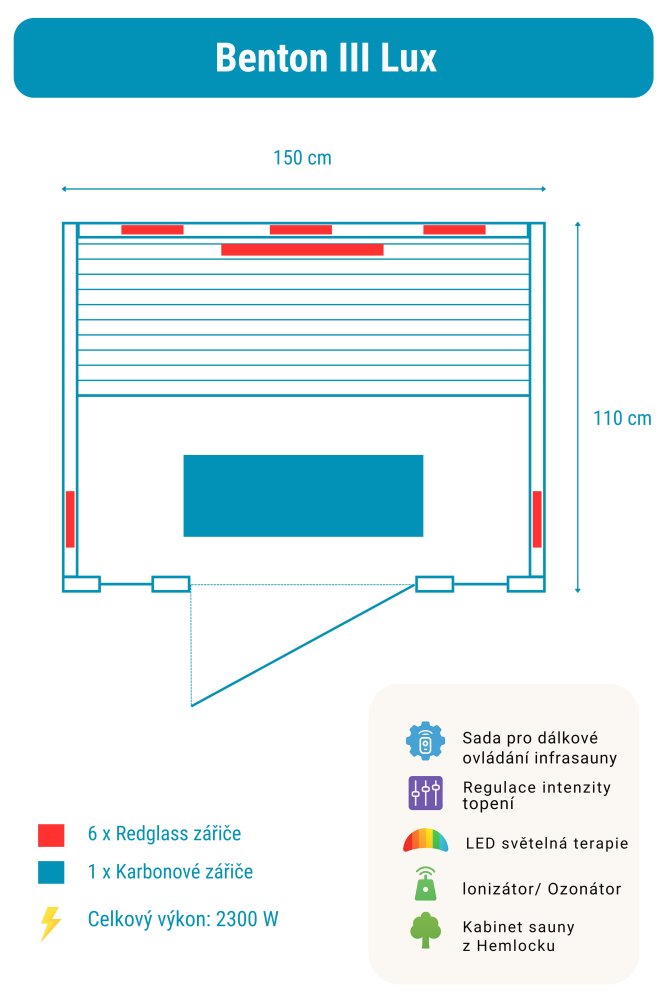 Sauna na podczerwień Benton 3 Lux zawiera:
