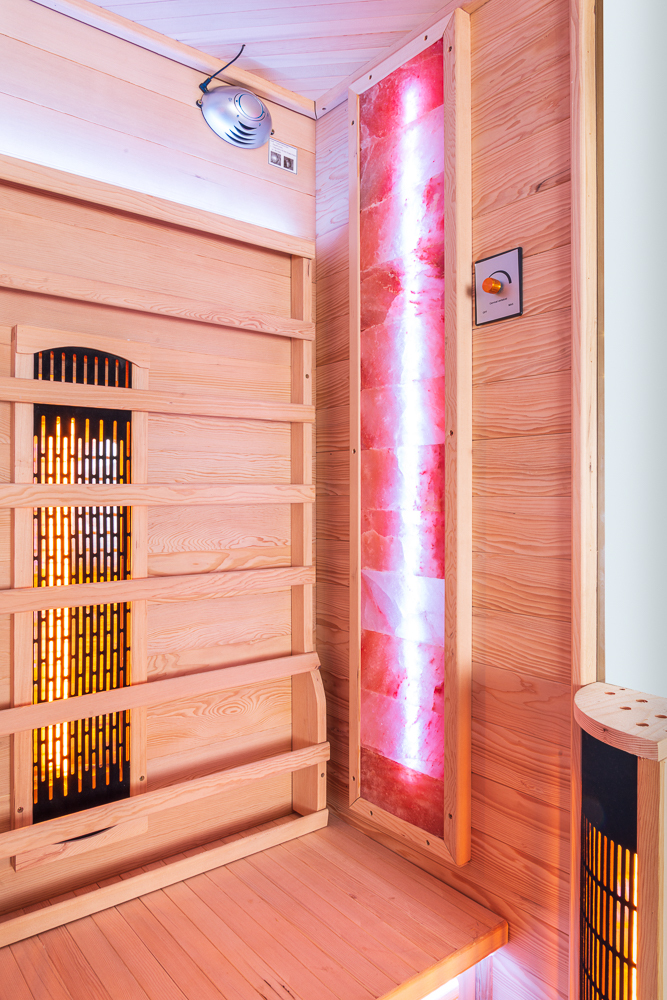 W saunach na podczerwień Belatrix terapia ta odbywa się za pomocą ściany solnej składającej się z 12 cegieł o wymiarach 40 × 130 cm, z wbudowanym kolorowym podświetleniem LED.