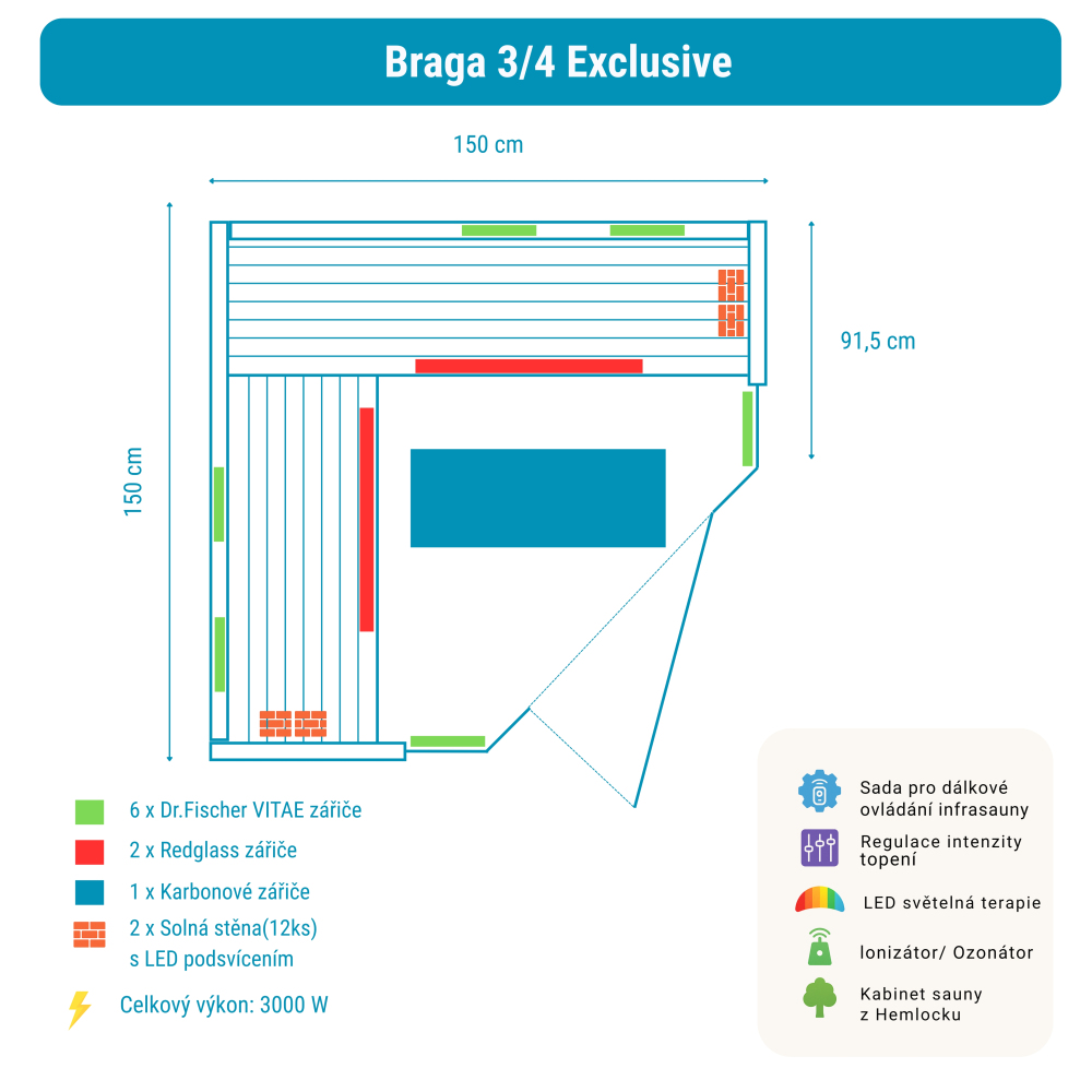 Sauna na podczerwień Braga 3/4 Exclusive zawiera: