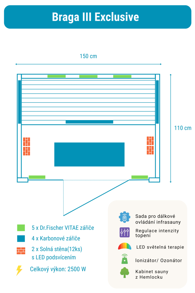 * Fotografie mají ilustrační charakter. Počet zářičů odpovídá půdorysu konkrétní infrasauny.