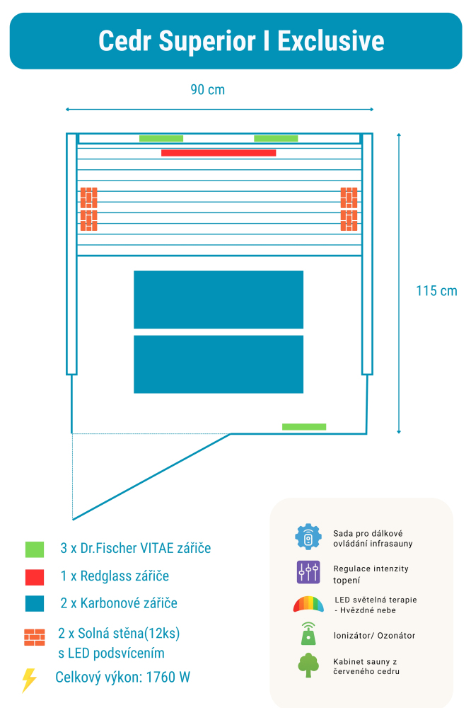 Sauna na podczerwień Cedr Superior I Exclusive zawiera: