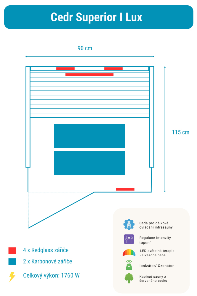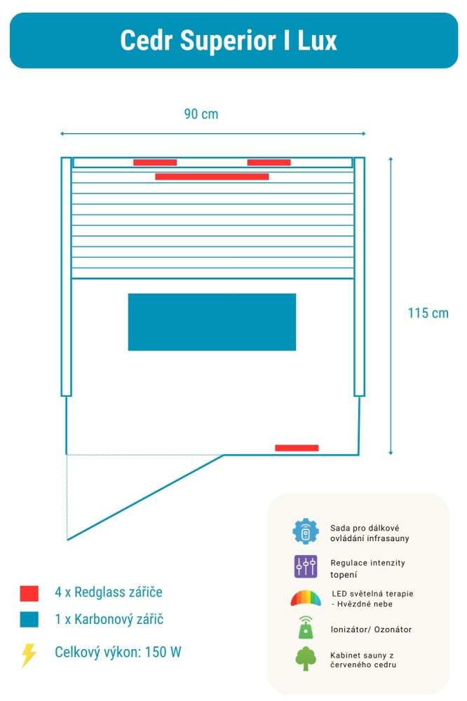 Sauna na podczerwień Cedr Superior 1 Lux zawiera: