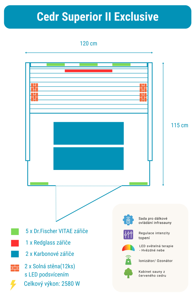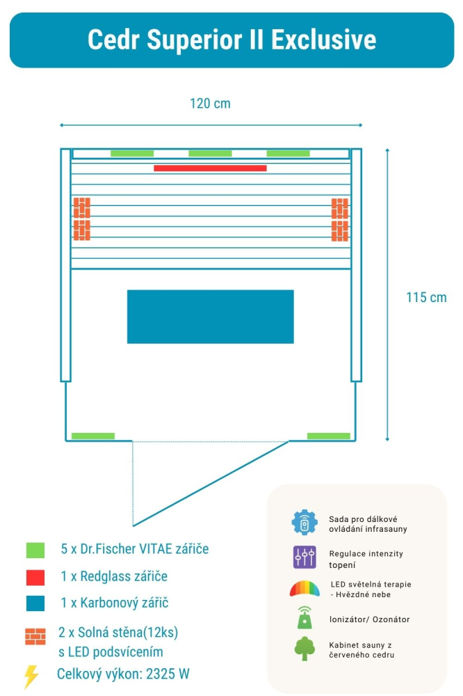 Sauna na podczerwień Cedr Superior 2 Exclusive zawiera: