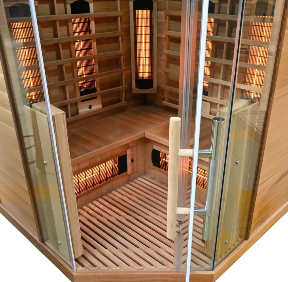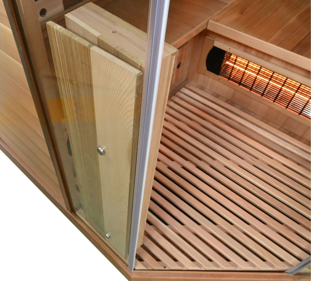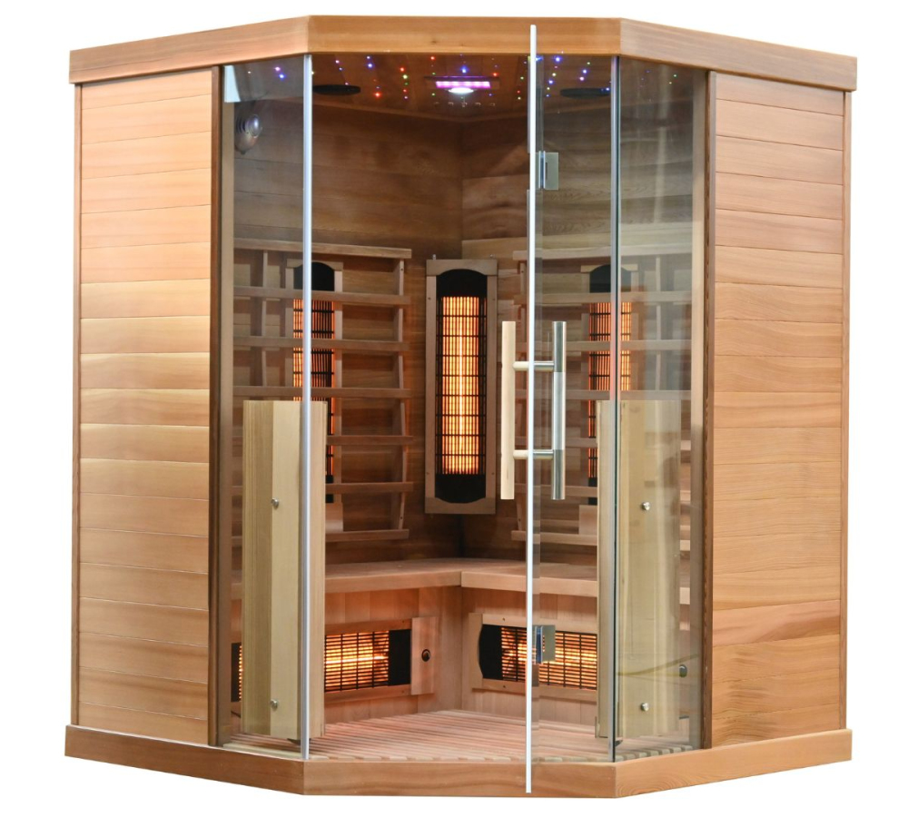 To nasza linia premium, wykonana z luksusowego materiału, kanadyjskiego (czerwonego) cedru. Wyposażona w najnowocześniejszy sprzęt, w tym najnowocześniejsze elementy sauny na podczerwień, w tym połączenie promienników węglowych i promienników pełnospektralnych (możliwość wymiany na Philips VITAE).