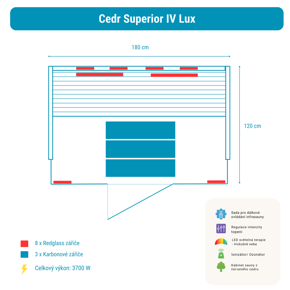 Infrasauna Cedr Superior 4 Lux obsahuje: