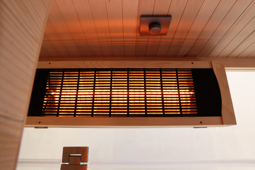 Standardowe grzejniki fabryczne: Sauna na podczerwień jest wyposażona w pełnospektralne grzejniki RedGlass Dark . W drugim kroku zamówienia istnieje możliwość wyboru grzejnika Philips Vitae w obniżonej cenie .