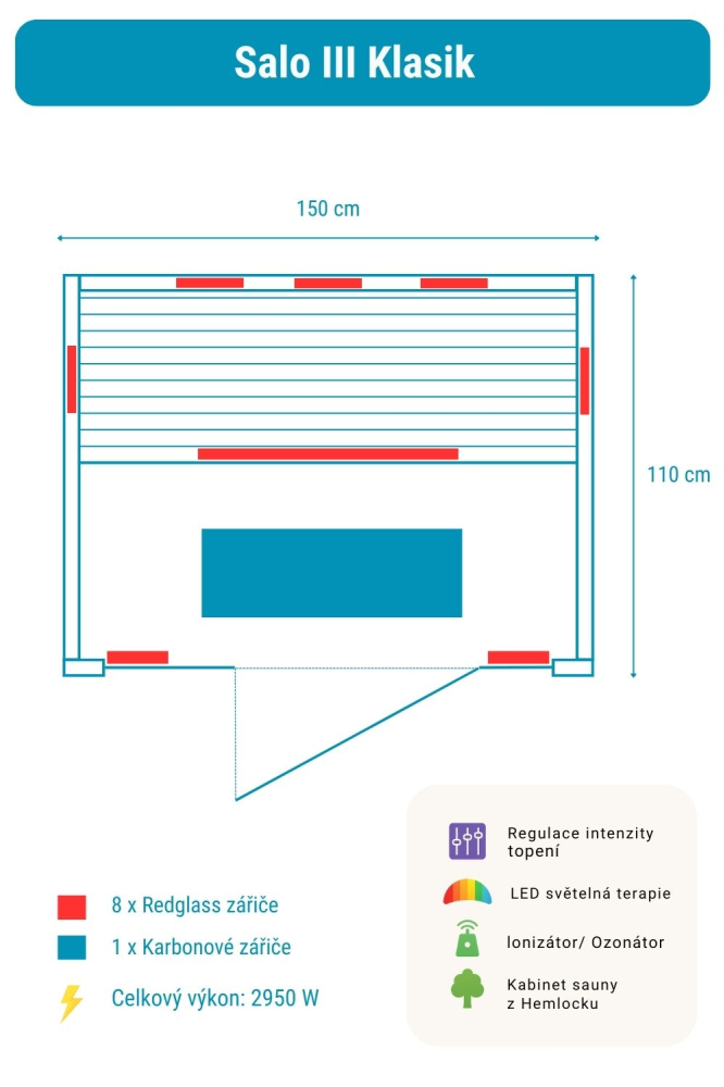 Sauna na podczerwień Salo 3 Classic zawiera: