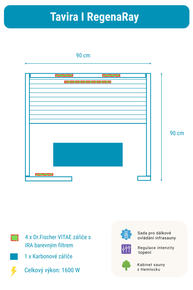 Sauna na podczerwień Tavira I RegenaRay obejmuje: