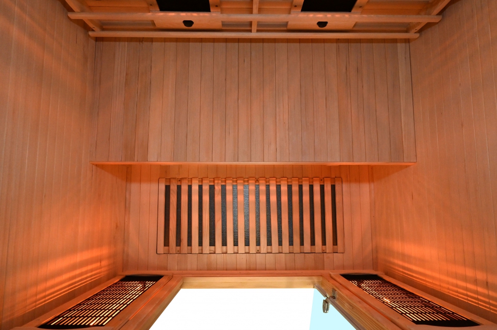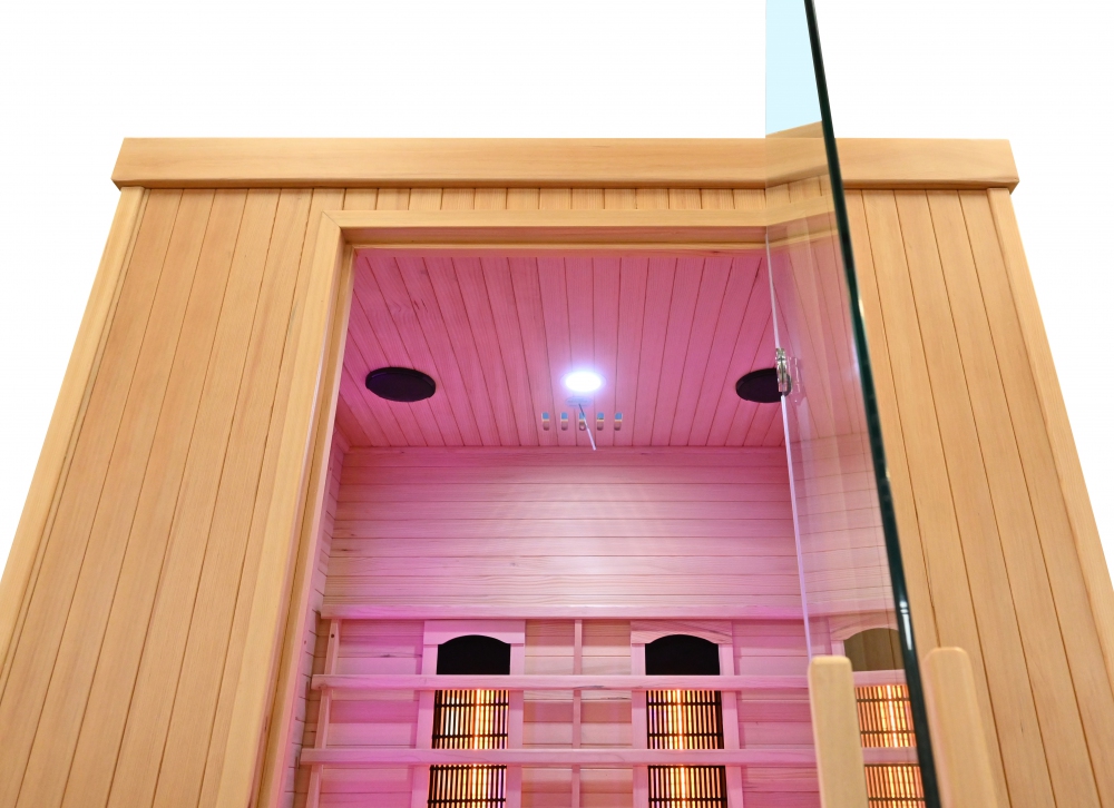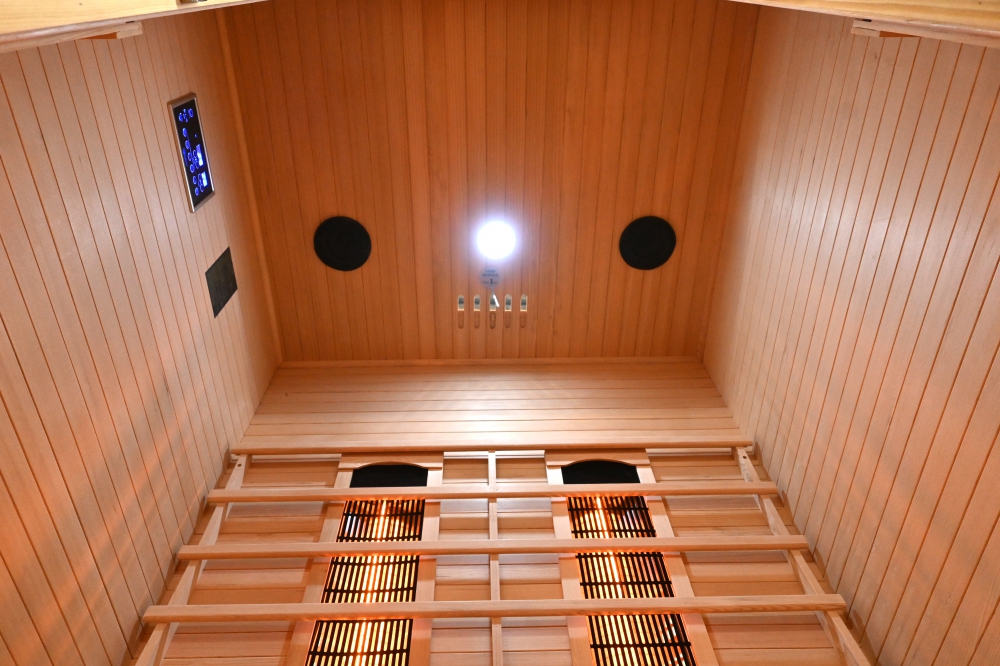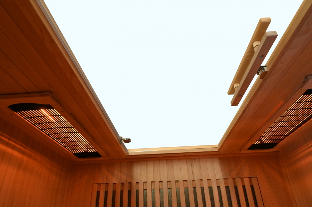 Standardní zářiče z výroby: Infrasauna je osazena plněspektrálními zářiči RedGlass Dark. V druhém kroku objednávky je možné za zvýhodněnou cenu zvolit alternativu Philips Vitae.