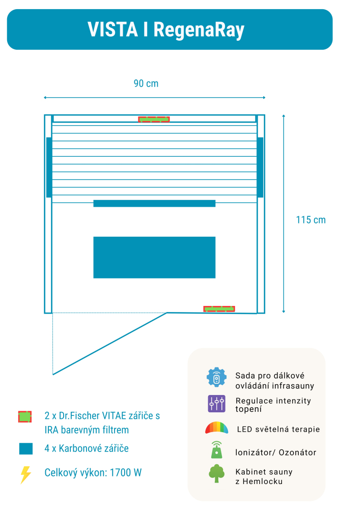 Sauna na podczerwień Vista 1 RegenaRay obejmuje: