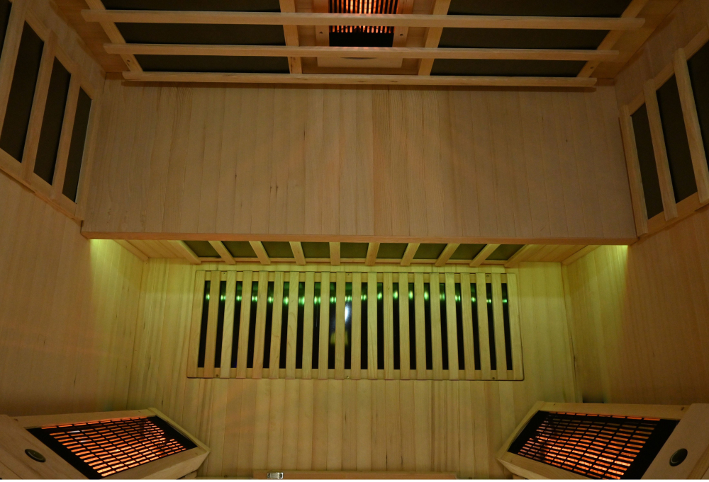 Aby zapewnić idealne i równomierne ogrzewanie całego ciała, sauny na podczerwień Belatrix wyposażone są w dodatkowy promiennik węglowy umieszczony w podłodze.