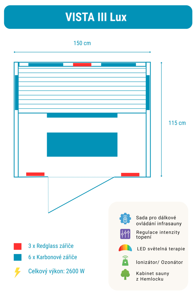 Sauna na podczerwień VISTA 3 Lux zawiera: