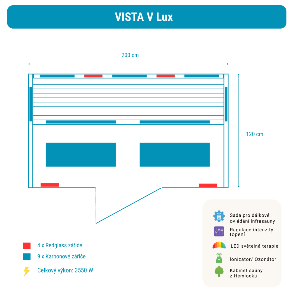 Sauna na podczerwień VISTA V Lux zawiera: