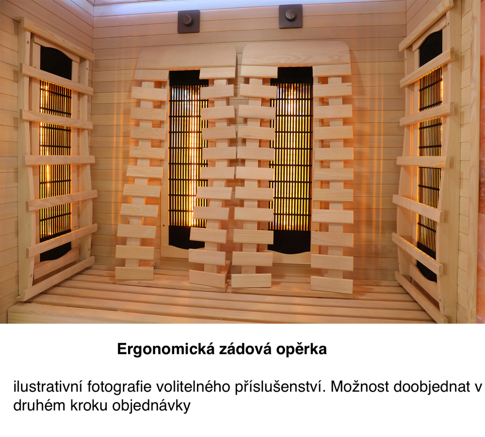Standardowe grzejniki fabryczne: Sauna na podczerwień jest wyposażona w pełnospektralne grzejniki RedGlass Dark . W drugim kroku zamówienia istnieje możliwość wyboru grzejnika Philips Vitae w obniżonej cenie .