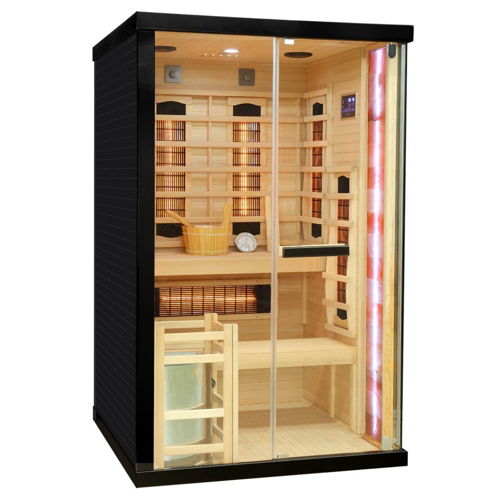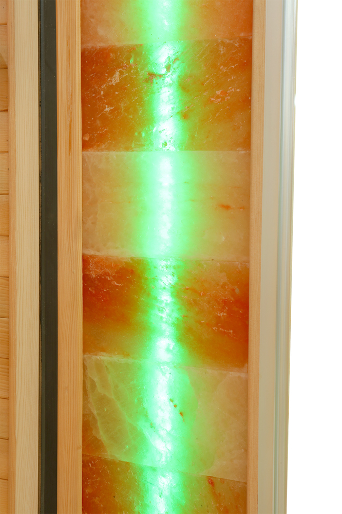 Jego integralną częścią jest podświetlenie kolorowymi taśmami LED. Podświetlenie jest zintegrowane ze światłoterapią zainstalowaną w saunie na podczerwień.