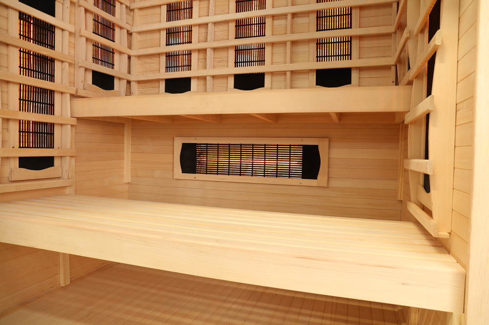 Standardowe grzejniki fabryczne: Sauna na podczerwień jest wyposażona w pełnospektralne grzejniki RedGlass Dark . W drugim kroku zamówienia istnieje możliwość wyboru grzejnika Philips Vitae w obniżonej cenie .
