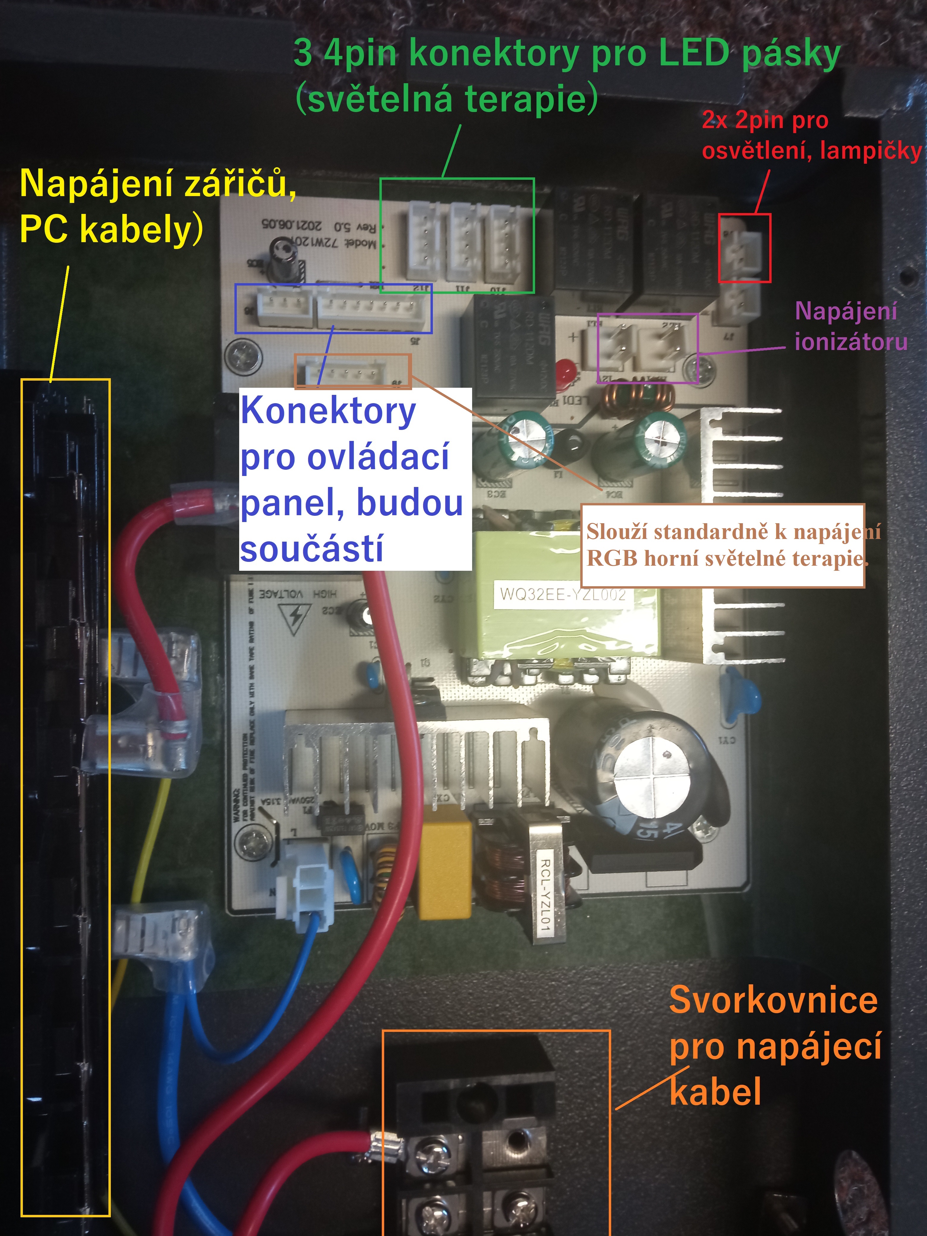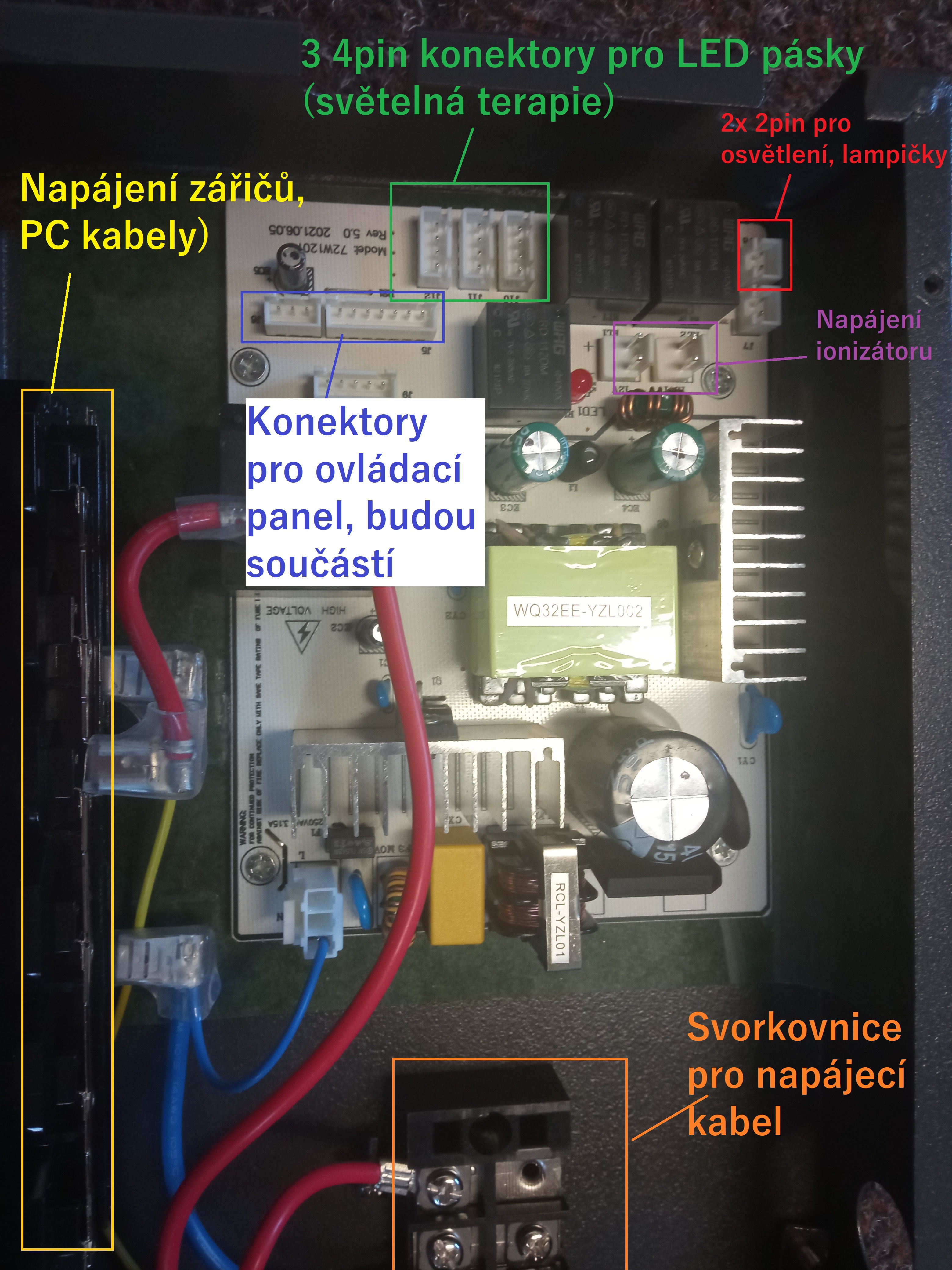 Zestaw NIE zawiera: - dystrybucja z paneli podczerwieni (bez promienników) - okablowanie od terapii światłem (bez pasków LED RGB) - okablowanie z panelu sterowania - okablowanie głośników (bez samych głośników) - kabel zasilający